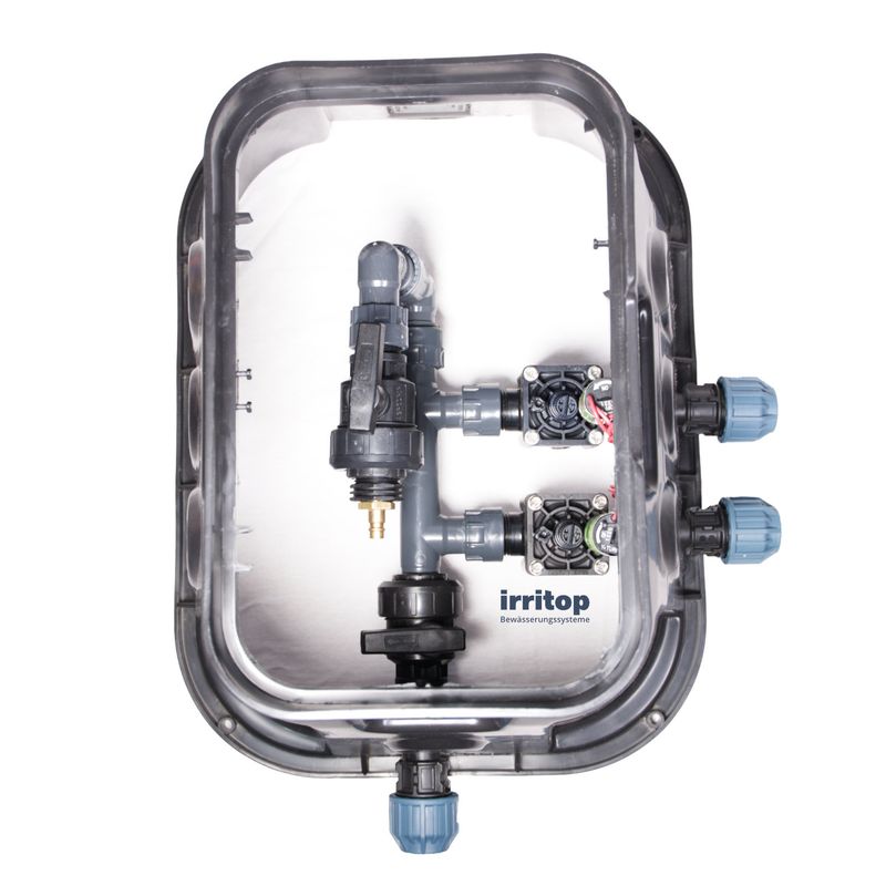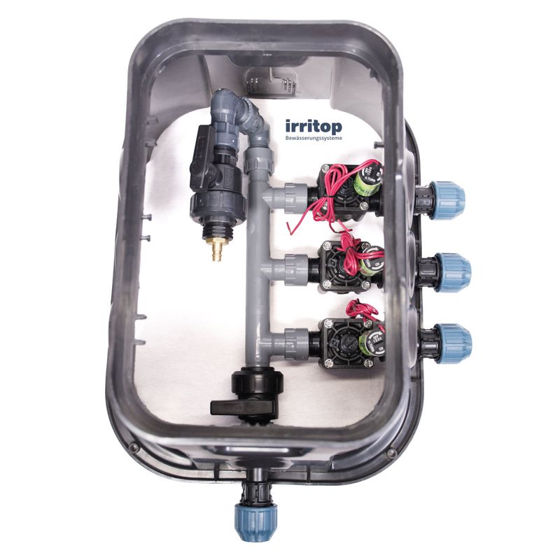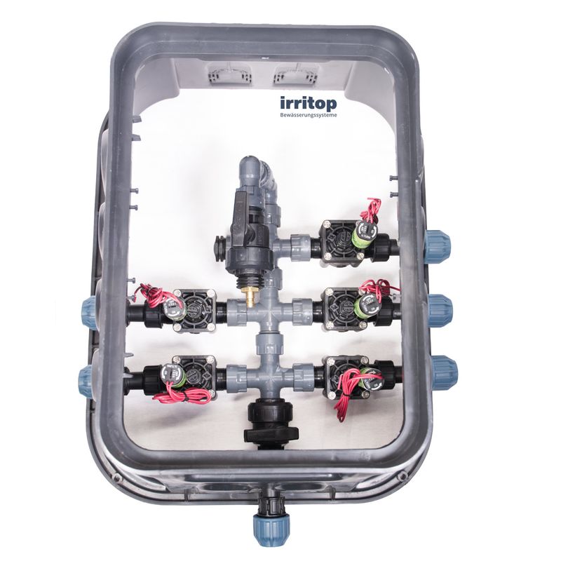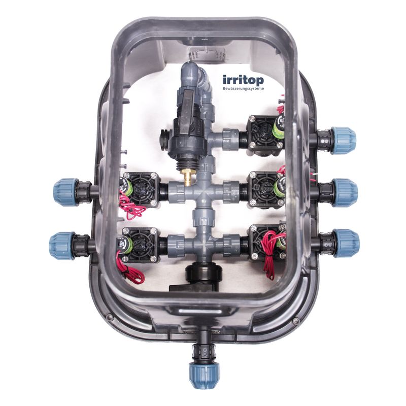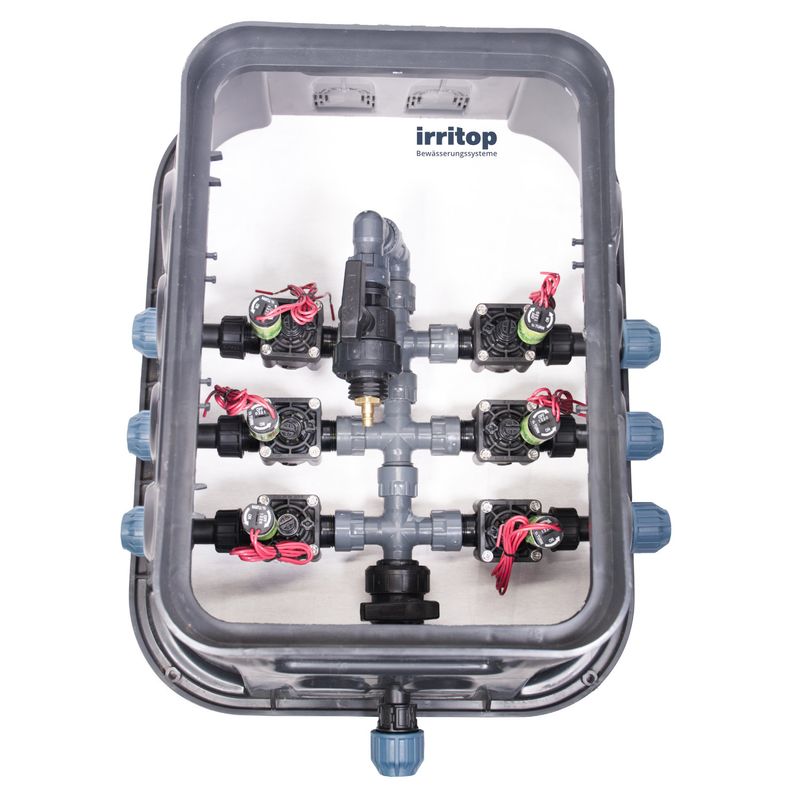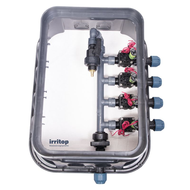Montagefertige Verteiler mit Ventilkasten für eine einfache und schnelle Installation im Garten. Hochwertige Ventilverteilung mit Hunter Industries-Ventilen zu einem hervorragenden Preis-Leistungs-Verhältnis.