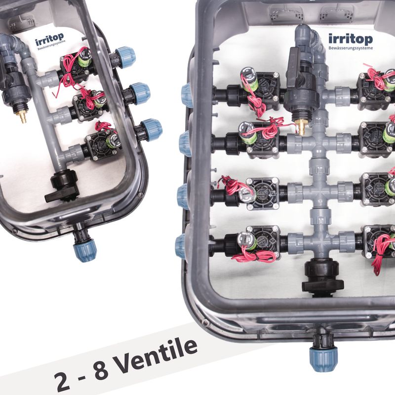 Die Standard-Ventilbox kann bis zu 6 Ventile aufnehmen, während die Jumbo-Ventilbox von 4 bis zu 8 Ventilen reicht.