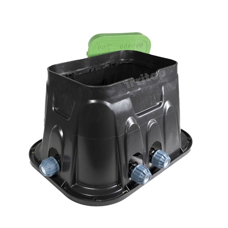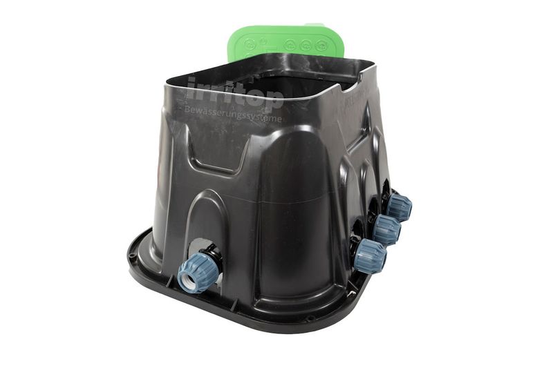 Bodeneinbaudose für den unterirdischen Einbau von Bewässerungsventilen. Unsere Ventilboxen sind ohne Boden, aber mit Deckel. Durch den einfach aufklappbaren Deckel sind Zugriffe für Servicezwecke einfach ermöglicht. Setzen Sie die Ventilbox beim Einbau auf eine Kiesschicht, so lässt sie sich innen später schnell und einfach von Zeit zu Zeit mit einem Gartenschlauch oder Gießkanne reinigen.